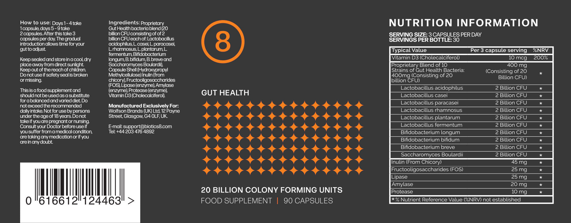 Neem elke dag 3 gemakkelijk in te slikken capsules Biotics 8 om je lichaam te voeden met goede darmbacteriën en ervaar een optimale darmgezondheid!